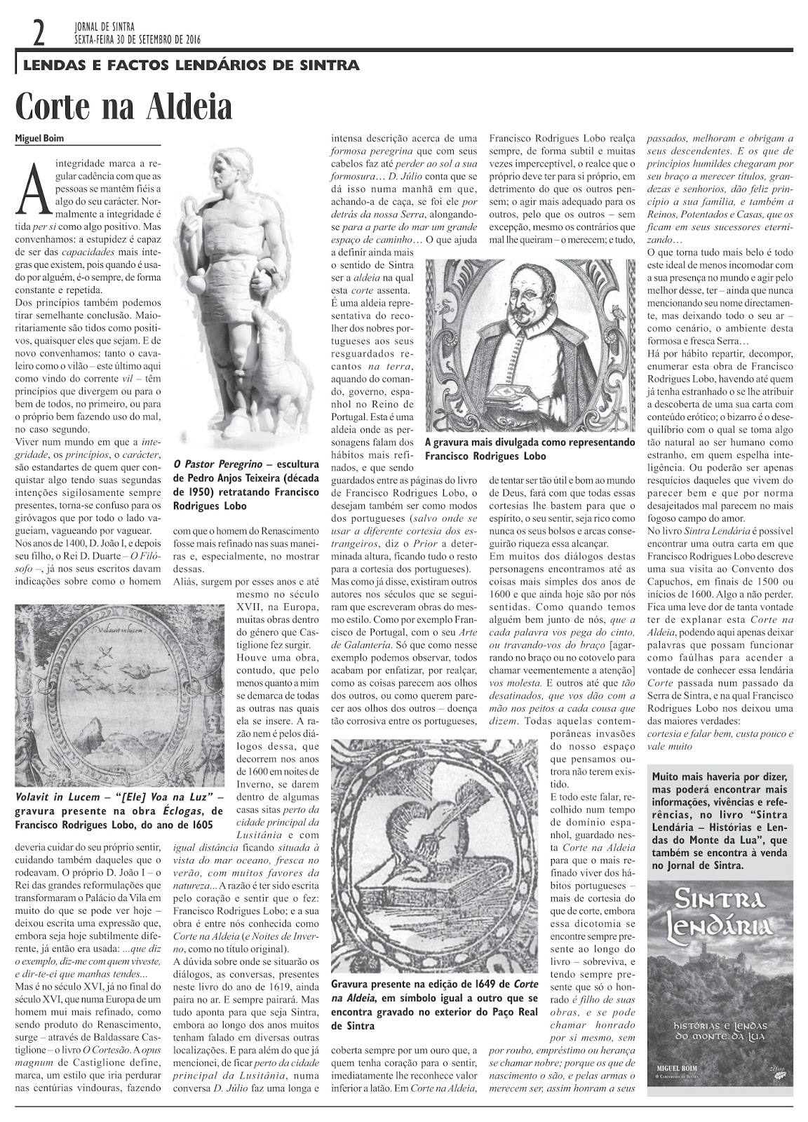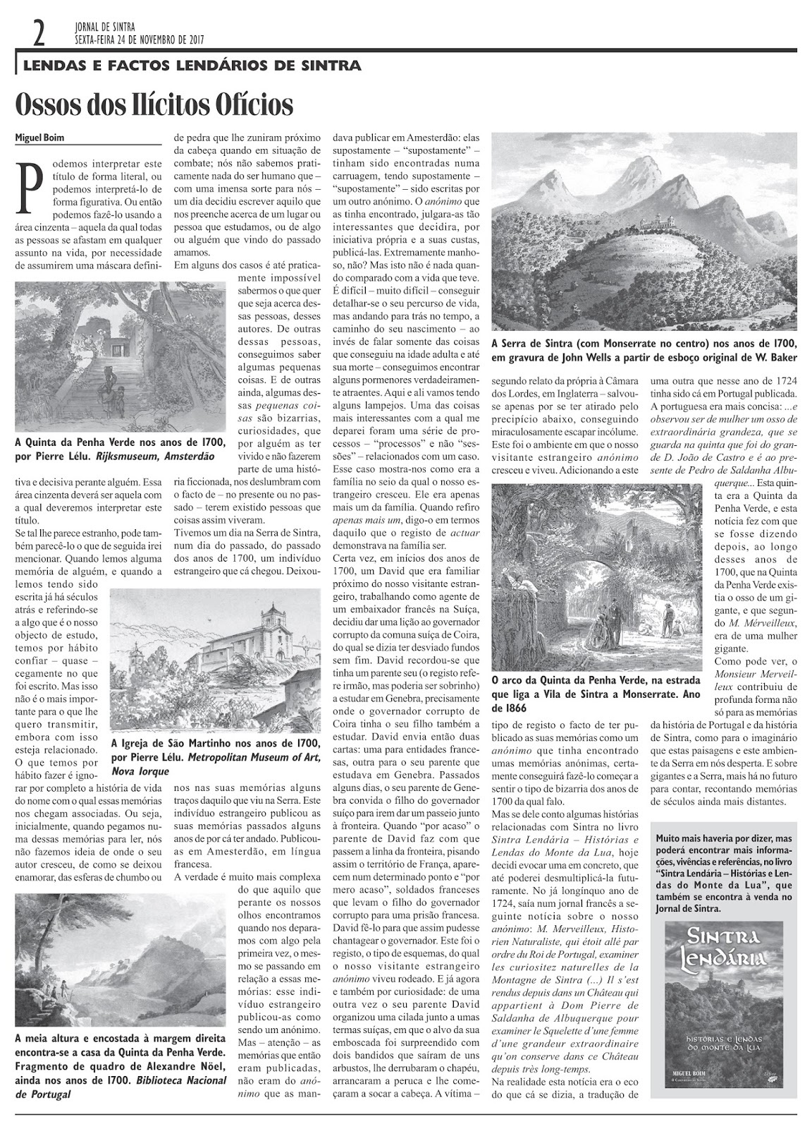 O livro Sintra Lendária - Histórias e Lendas do Monte da Lua poderá tocar alguns dos escritos aqui presentes, mas de uma forma muito mais aprofundada. Os artigos poderão roçar o que é mencionado naqueles que saíram na revista O Caminheiro de Sintra, assim como no podcast Lendas da Lua.